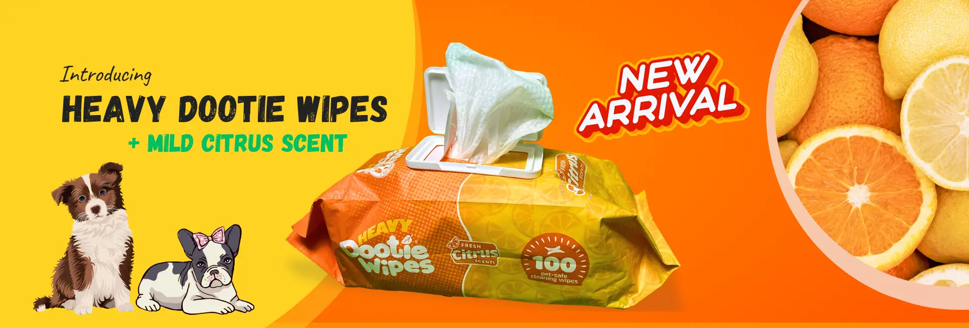 Keep your pup fresh and clean with Heavy Dootie Pet Wipes! Specially designed for paws and butt, these bamboo-based wipes are soft, extra-strong, and leave behind a light citrus scent. Perfect for quick cleanups at home or after walks.