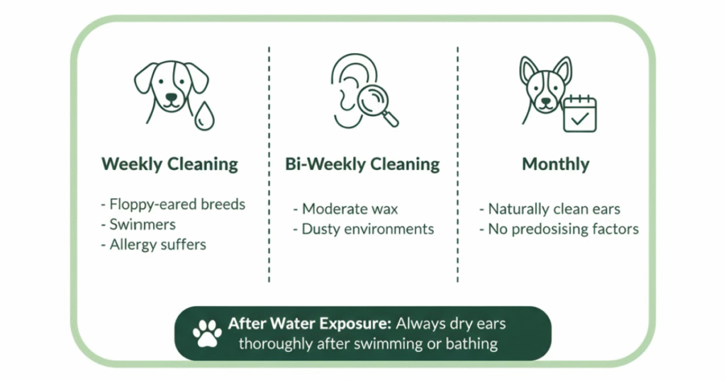 Bi-Weekly Cleaning: Dogs with moderate ear wax production or those exposed to dusty environments