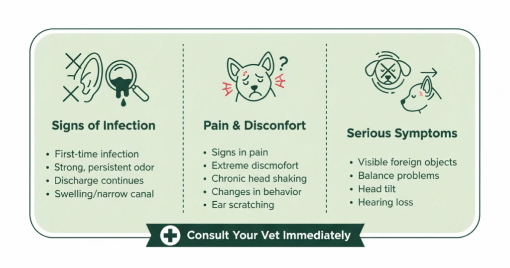 While routine clean dog ears maintenance can be done at home, certain situations require professional care: