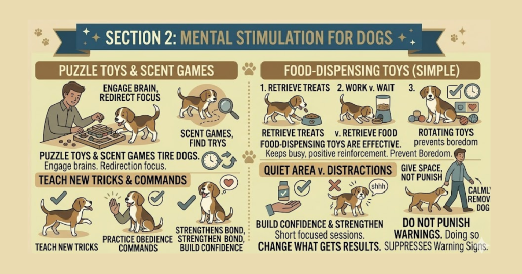 Beyond physical exercise, mental challenges tire dogs in different ways. Puzzle toys, scent games, and training sessions engage their brains and redirect focus away from anxiety triggers. Teaching new tricks or practicing obedience commands strengthens your bond while building confidence.