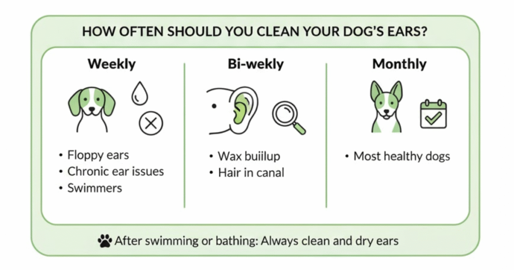 Weekly: Dogs with floppy ears, chronic ear issues, or those who swim frequently