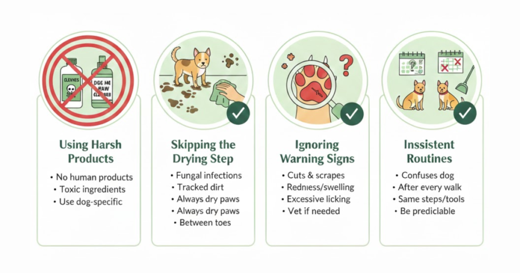 Keep your supplies near the door for quick access. This makes it easier to clean paws immediately after walks, before dirt spreads through your home.
