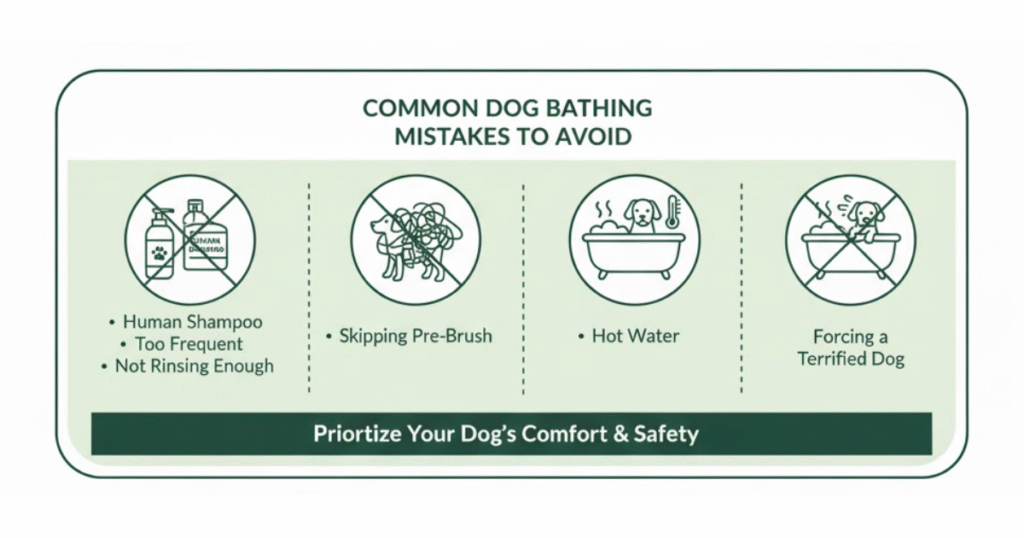 Forcing a Terrified Dog: If your dog is truly panicked, consider professional grooming or working with a trainer to reduce bath anxiety gradually.