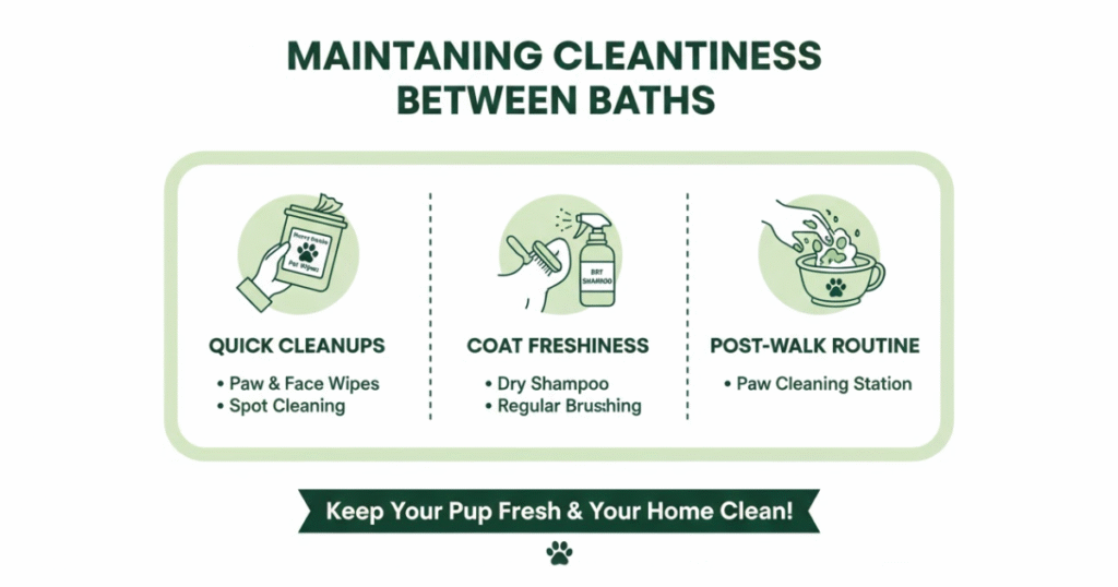 You don’t need a full bath every time your dog gets a little dirty. Here are ways to keep your dog fresh between full baths:
