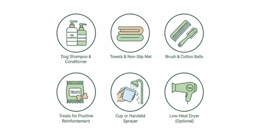 Gathering your supplies before bath time makes the process smoother and less stressful for both you and your dog. Here’s your essential checklist: