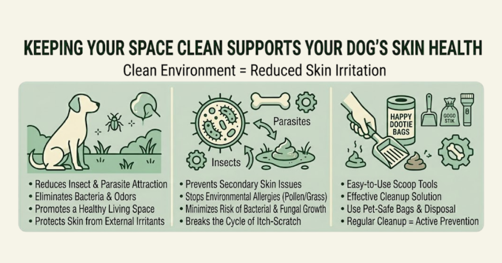 One thing many dog owners overlook is how much environment affects skin health. A yard full of old waste attracts insects and parasites that irritate your dog’s skin. As a result, regular cleanup is not just about aesthetics — it is an active part of keeping your dog healthy and itch-free.
