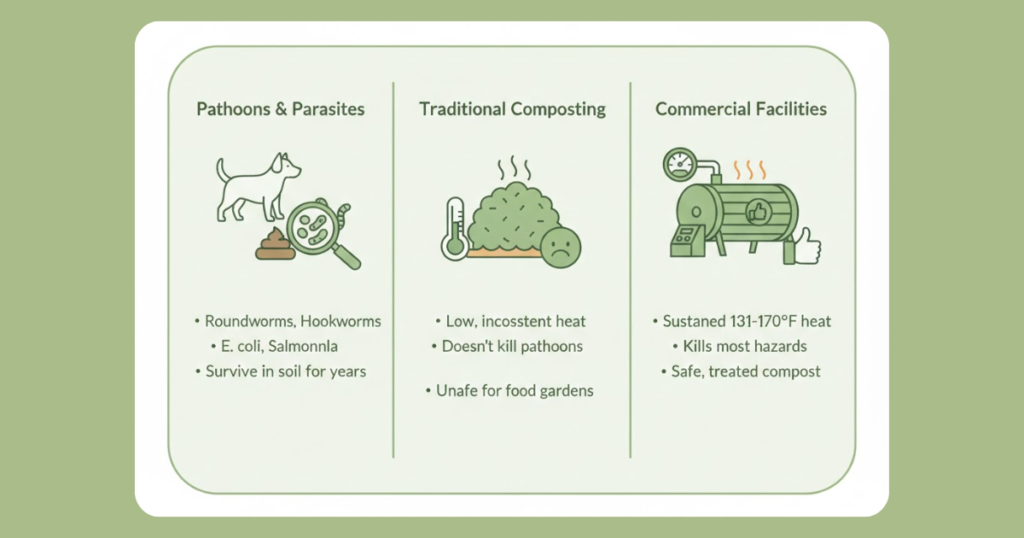 The primary concern involves parasites and bacteria. Dogs can carry roundworms, hookworms, and E. coli in their digestive systems. These organisms can survive in soil for years if not properly treated. Therefore, traditional backyard composting methods won’t necessarily eliminate these health hazards.