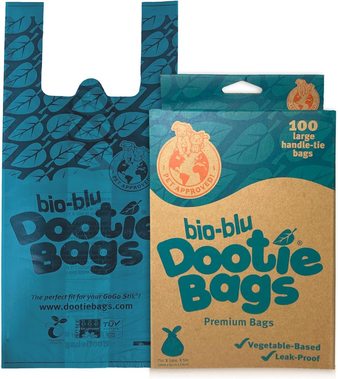 Need a better poop bag? Compare dimensions: 16″ L x 12″ W (including side gussets); volume: 2 gal. Are you looking for better bags? These Large Bio-Blu Dootie Bags are easy to use and hold a lot! Bio-Blu Dootie Bags are larger, strong, and leakproof and are specially designed to fit your GoGo Stik pooper scooper. Scoop pounds of poop in one bag to make your dog or pet waste scooping faster and less wasteful.