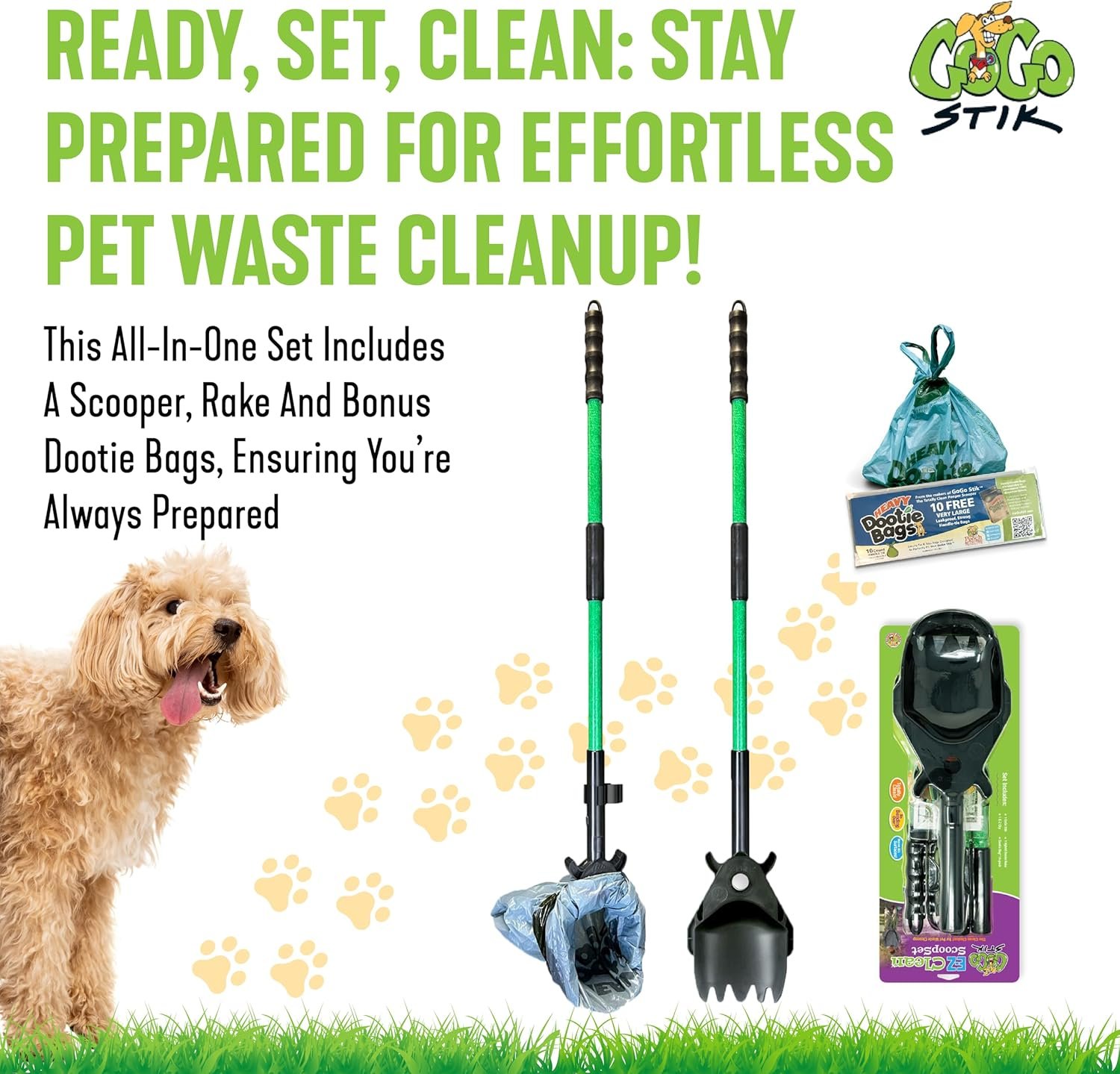 GoGo Stik® XP Pooper Scooper & Dootie Rake Set with Dootie Bags