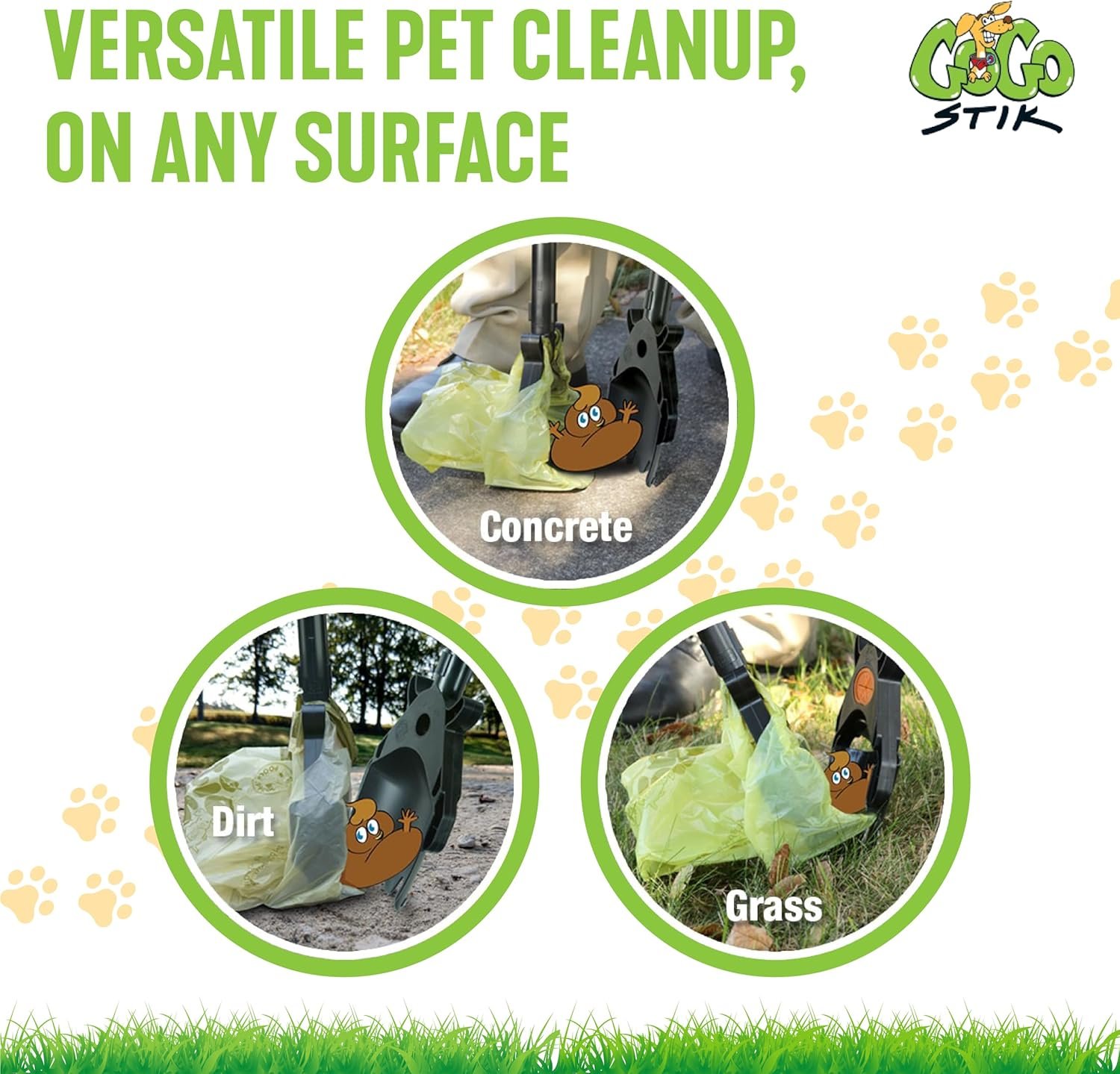 Clean, Quick, and Convenient! GoGo Stik XP Pooper Scooper, EZ Dootie Hybrid Rake, and Storage Clip for Clean and Quick Dog Pet Waste Cleanup. Patented.