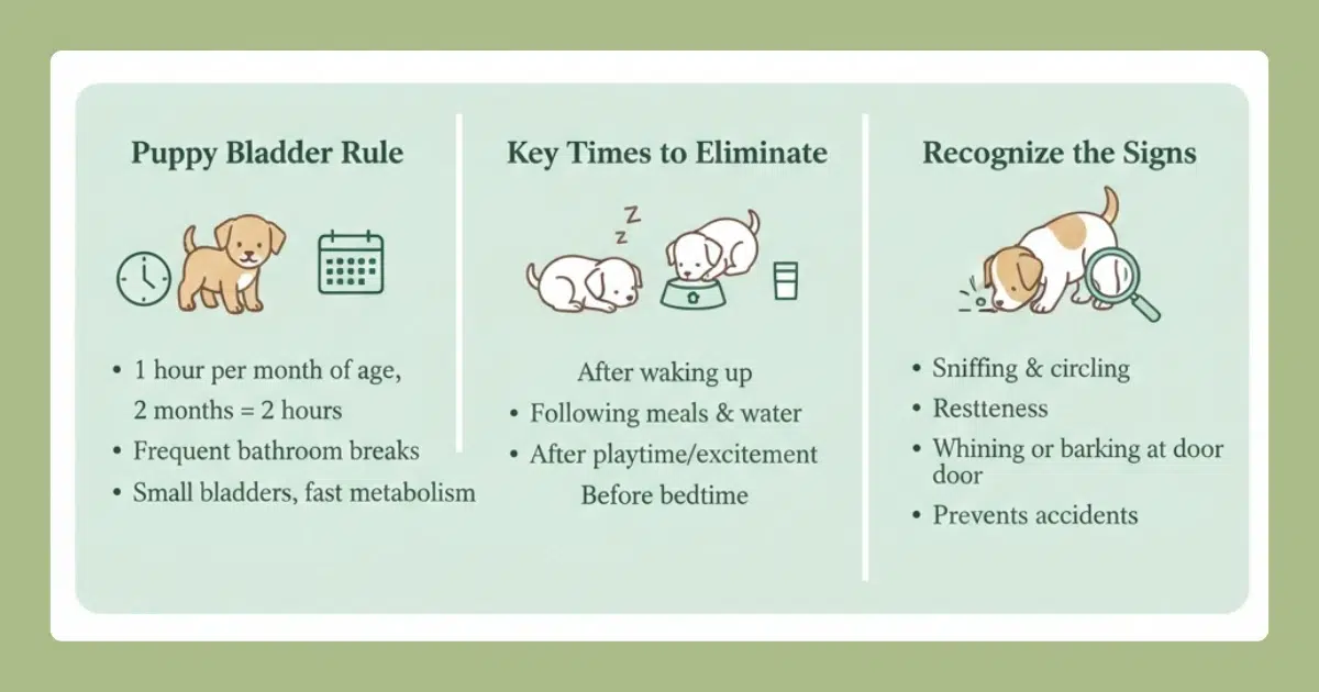 Recognizing these patterns helps you anticipate when your puppy needs to go. Consequently, you can prevent accidents before they happen.