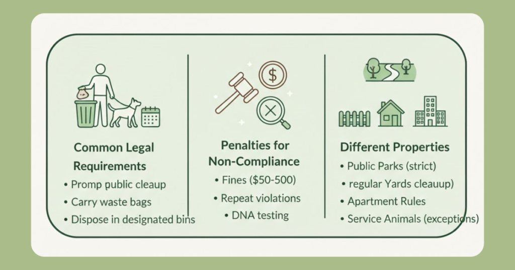Private Yards: Even on your own property, many jurisdictions require regular waste removal. For example, some cities mandate cleanup at least once per week to prevent pest attraction and groundwater contamination.