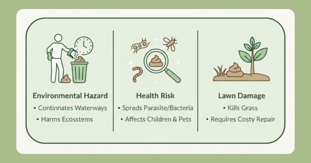 Correct Approach: Always remove waste promptly, even from your own yard. Proper disposal protects your lawn, your family, and your community.