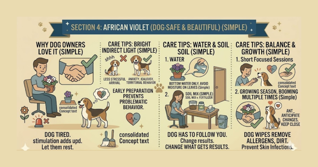 African violets deliver vibrant color year-round without posing any danger to your dog. Their soft, velvety leaves and rich purple, pink, or white blooms make them a beautiful addition to tabletops, shelves, and windowsills. These compact plants are perfect for small spaces, too.