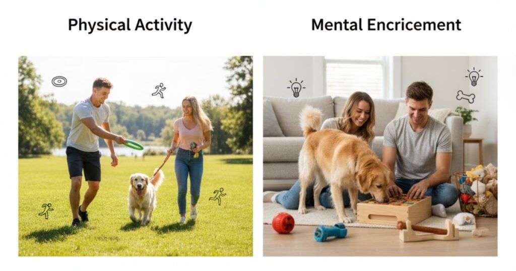 • High-energy breeds (Border Collies, Jack Russell Terriers, Australian Shepherds) need 2+ hours of exercise daily