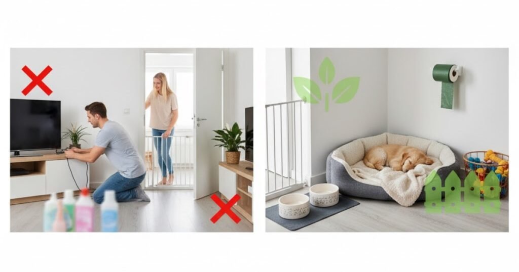 Just like baby-proofing, you need to make your home safe for your new companion:
