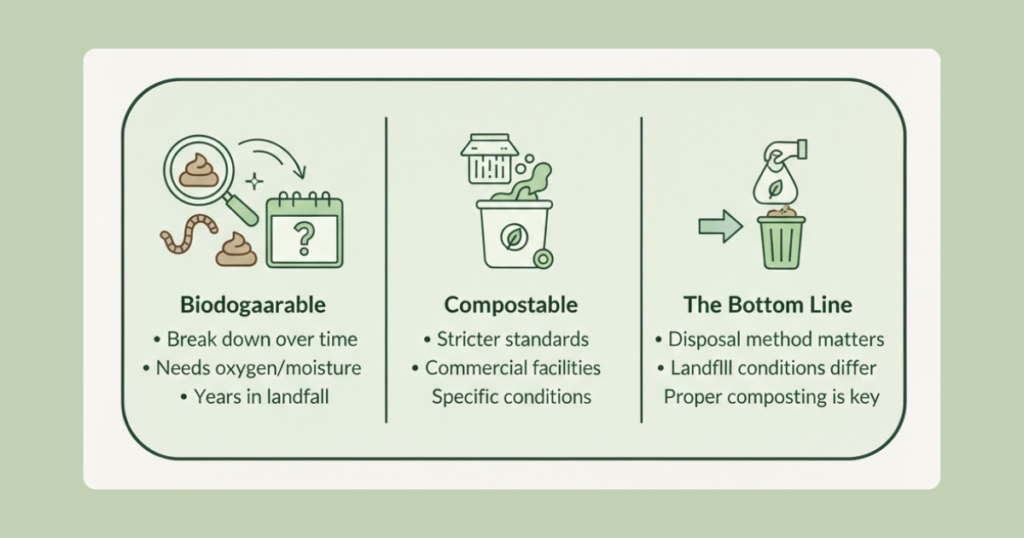 The bottom line: Your disposal method matters more than the bag type. A compostable bag in a landfill won’t perform much differently than a standard one.