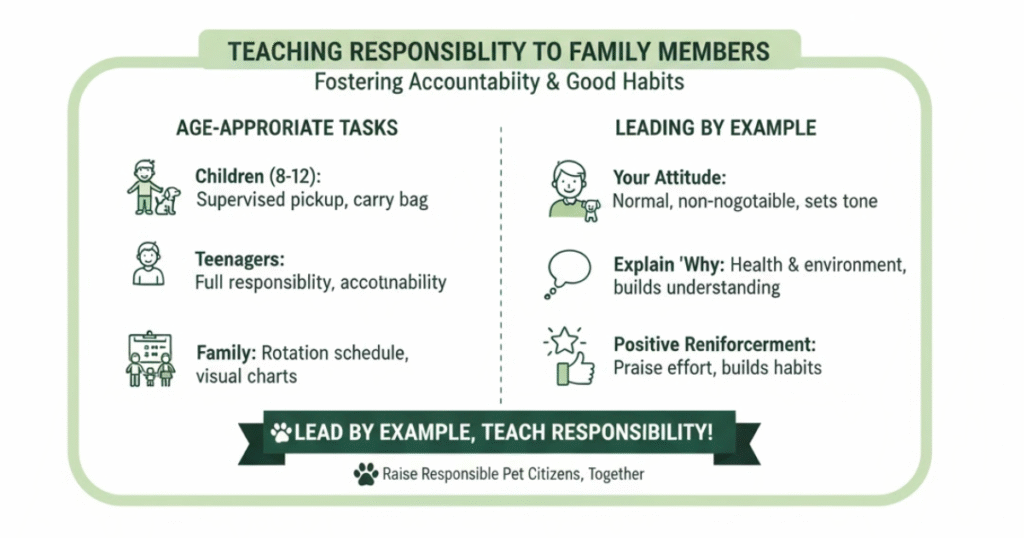 Your attitude toward this task directly influences how others in your household approach it. Treating cleanup as a normal, non-negotiable part of pet ownership rather than a burdensome chore sets the right tone.