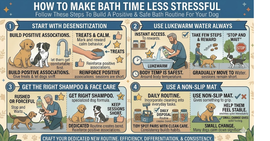 One of the most common mistakes dog owners make is using water that’s too hot or too cold. Dogs are more sensitive to temperature than most people realize. Lukewarm water — around body temperature — is the safest and most comfortable option.