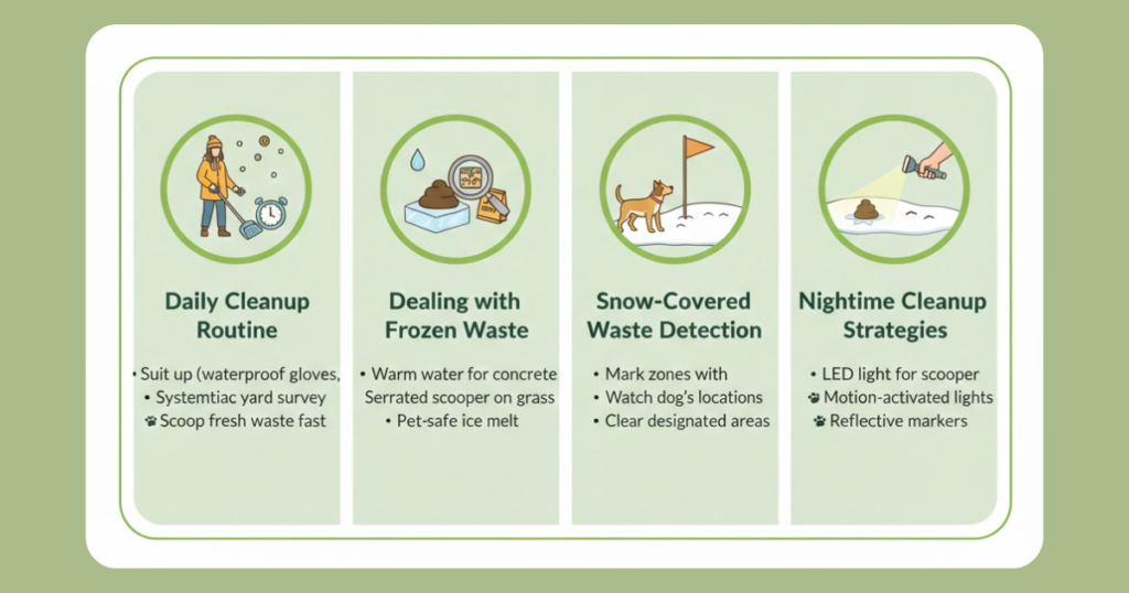 Establishing a daily cleanup routine prevents waste accumulation and makes each session faster. Even in harsh winter weather, consistency pays off.